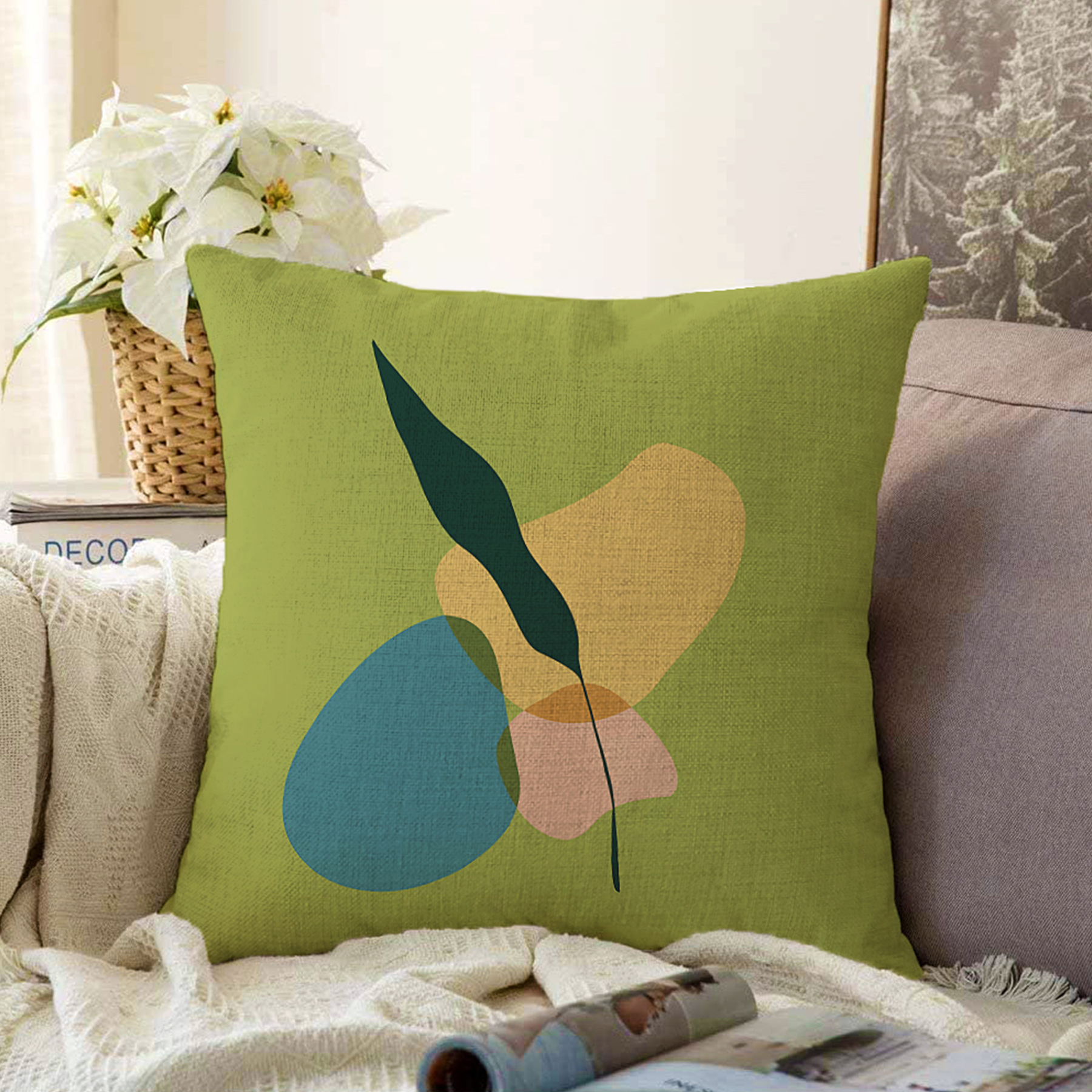 Yeşil Zemin Soyut Motifli Raşel Kadife Yastık Kırlent Kılıfı