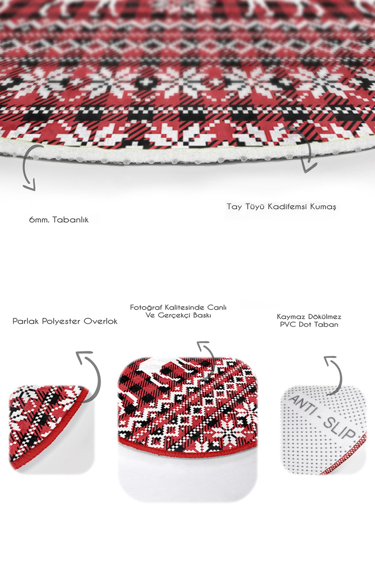 Yılbaşı Temalı Kanaviçe Motifli Geyik Özel Tasarım 2’li Oval Kaymaz Tabanlı Banyo & Mutfak Paspas Takımı