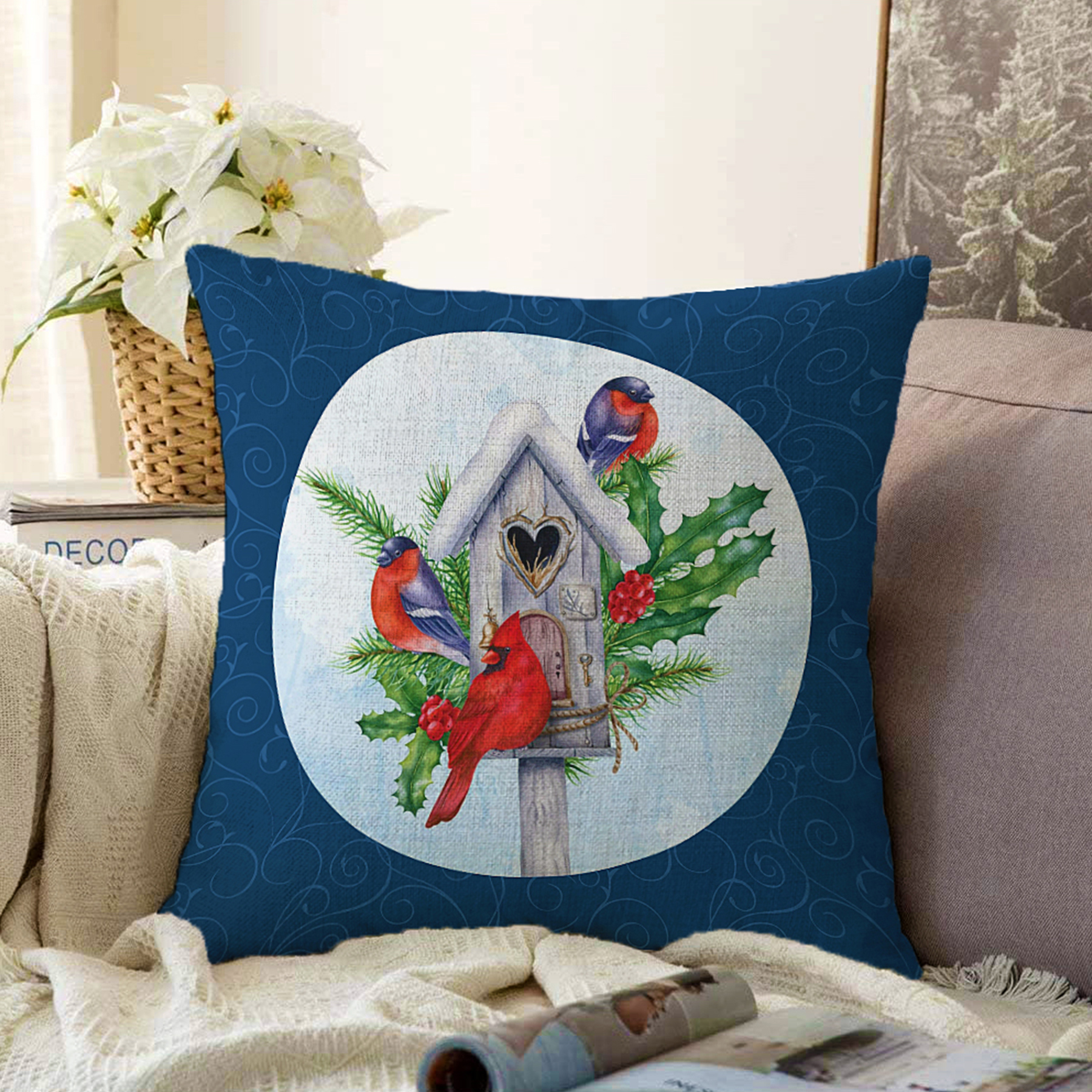 Yılbaşı Temalı Kuş Tasarımlı Dijital Baskılı Modern Raşel Kadife Yastık Kırlent Kılıfı