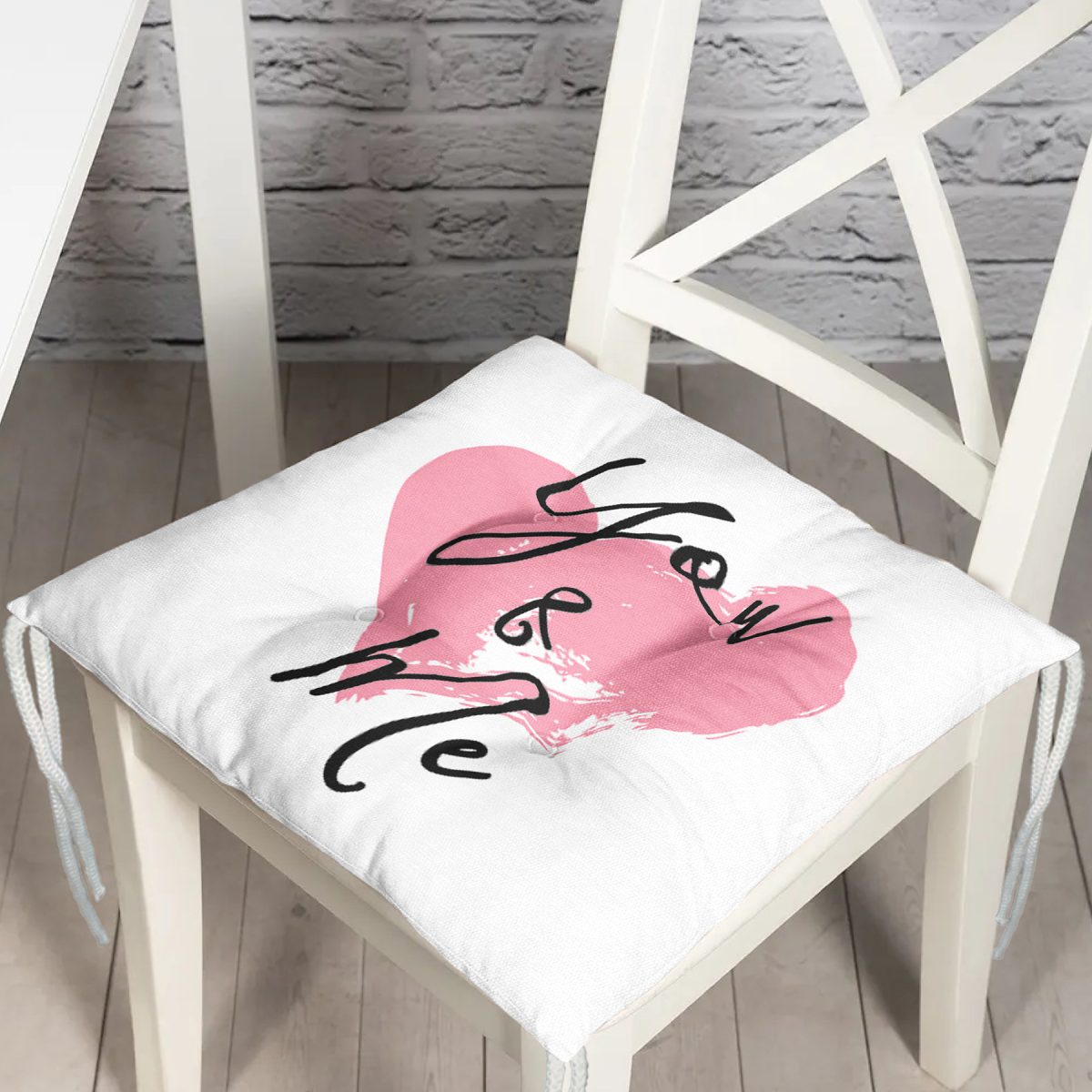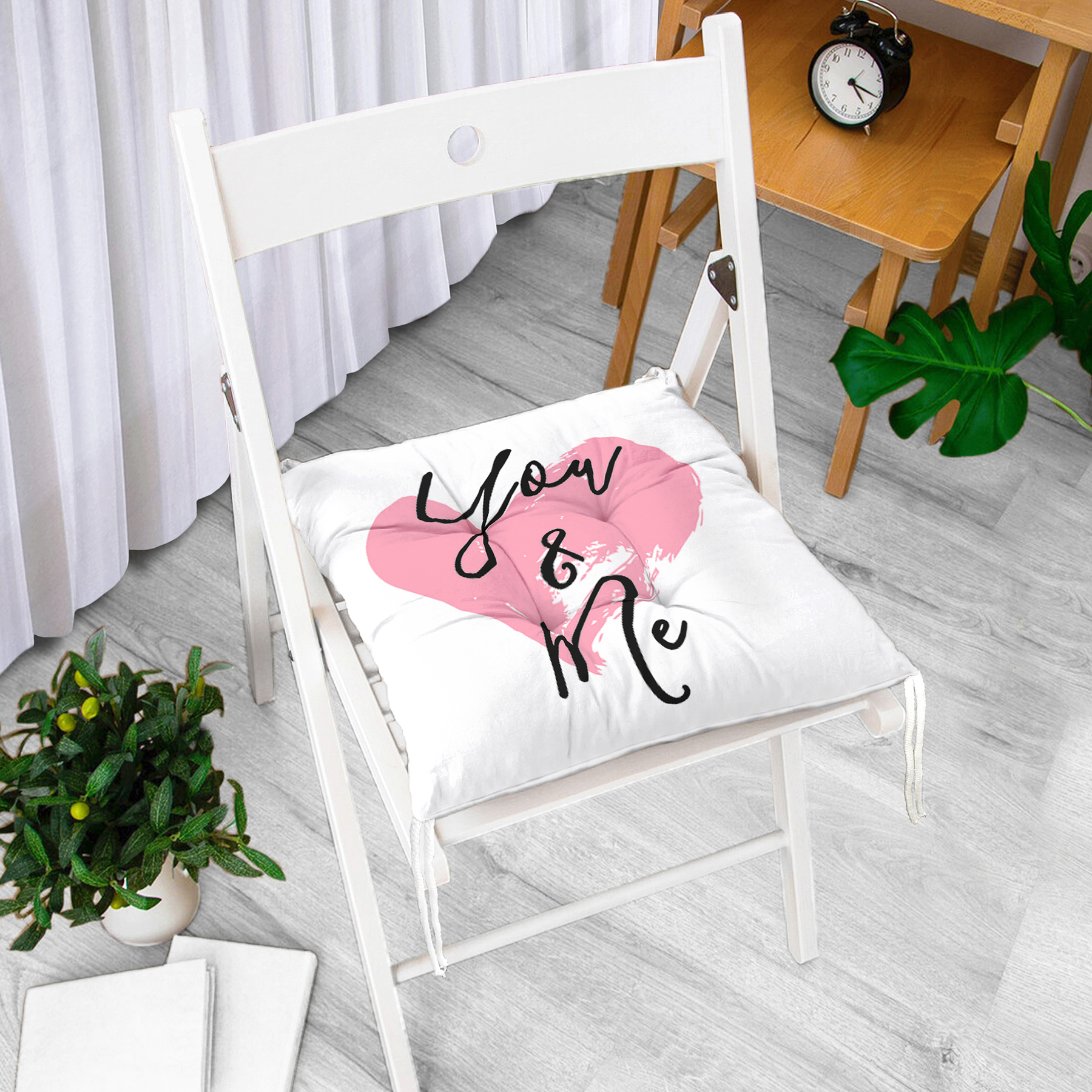 You & Me Kalp Yazılı Dijital Baskılı Modern Pofuduk Sandalye Minderi