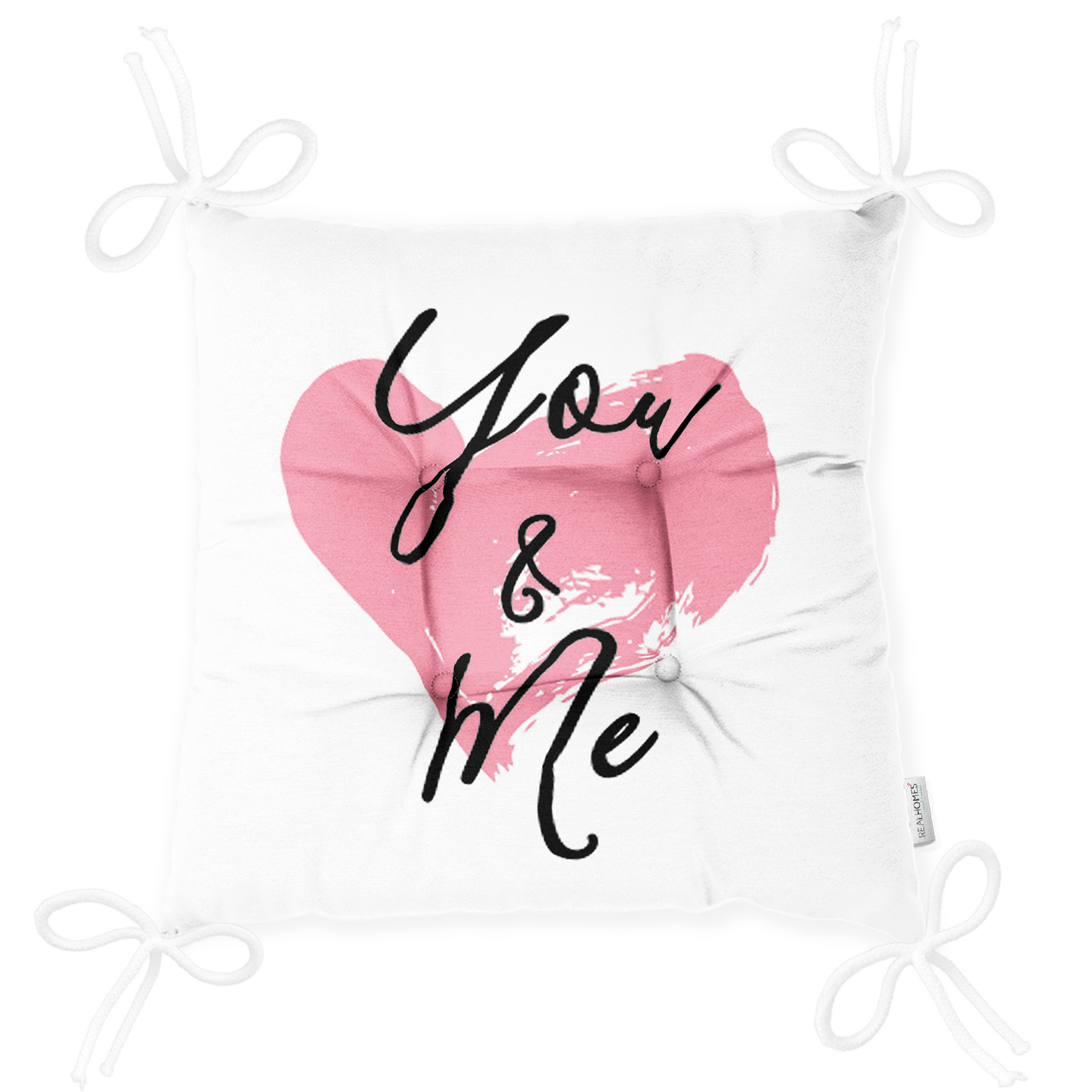 You & Me Kalp Yazılı Dijital Baskılı Modern Pofuduk Sandalye Minderi Realhomes