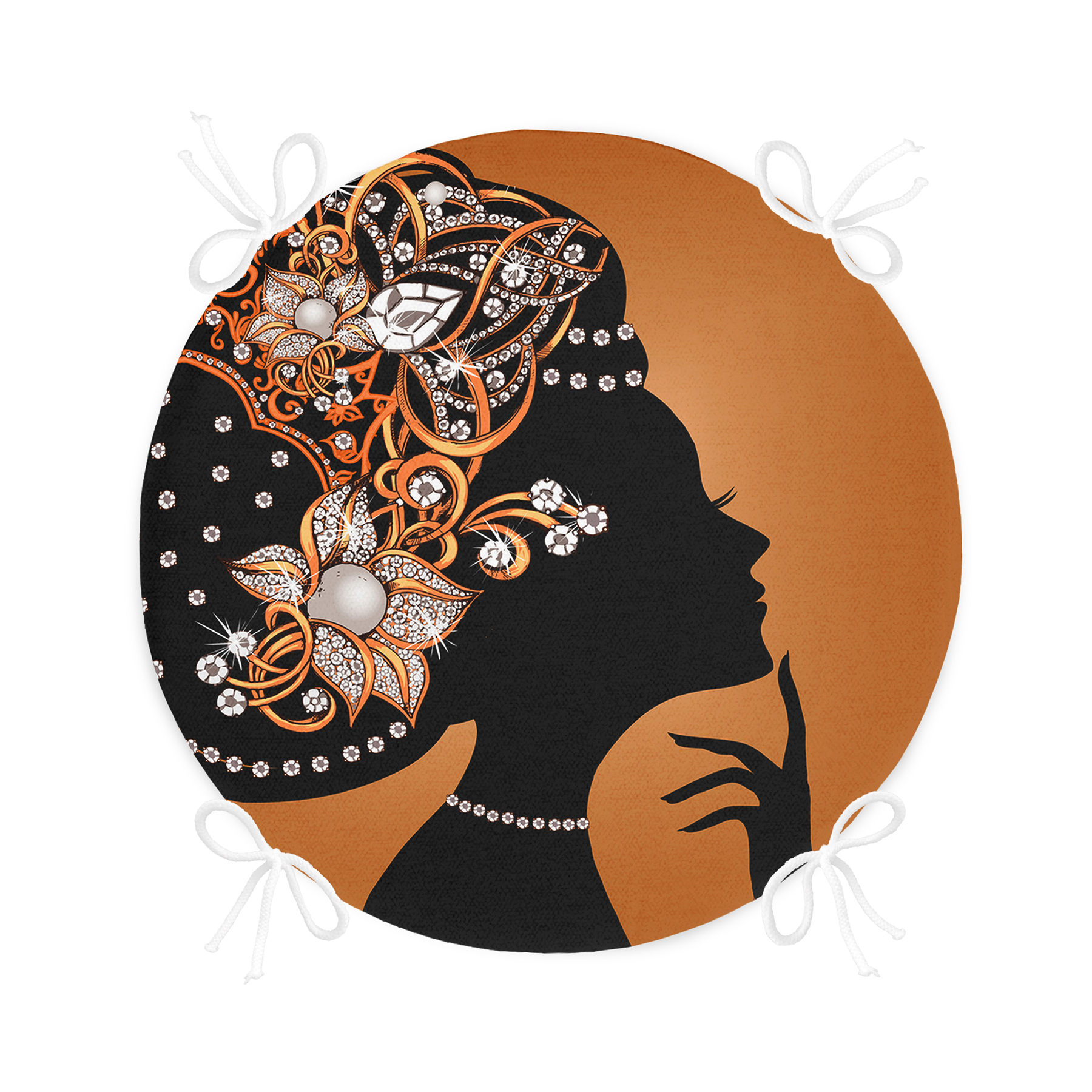 Zarafet Turuncu Zeminli Özel Tasarım Yuvarlak Fermuarlı Sandalye Minderi
