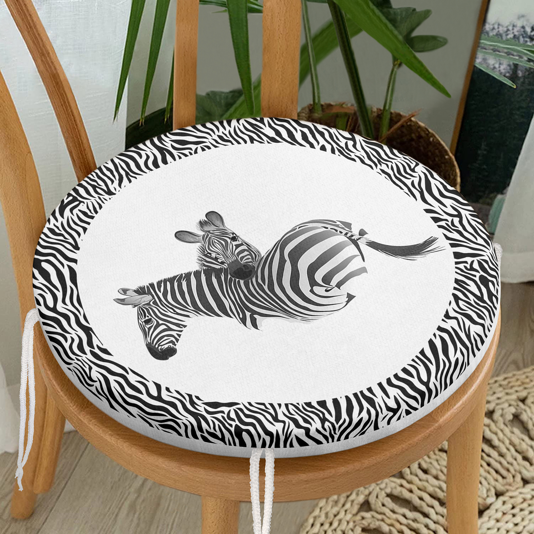 Zebra Çerçeveli Zebra Desenli Dijital Baskılı Yuvarlak Fermuarlı Sandalye Minderi
