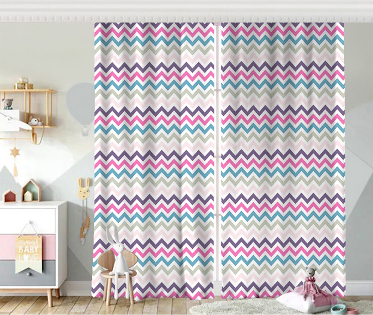 Zigzag Desen Dijital Baskılı Çocuk Odası Fon Perde