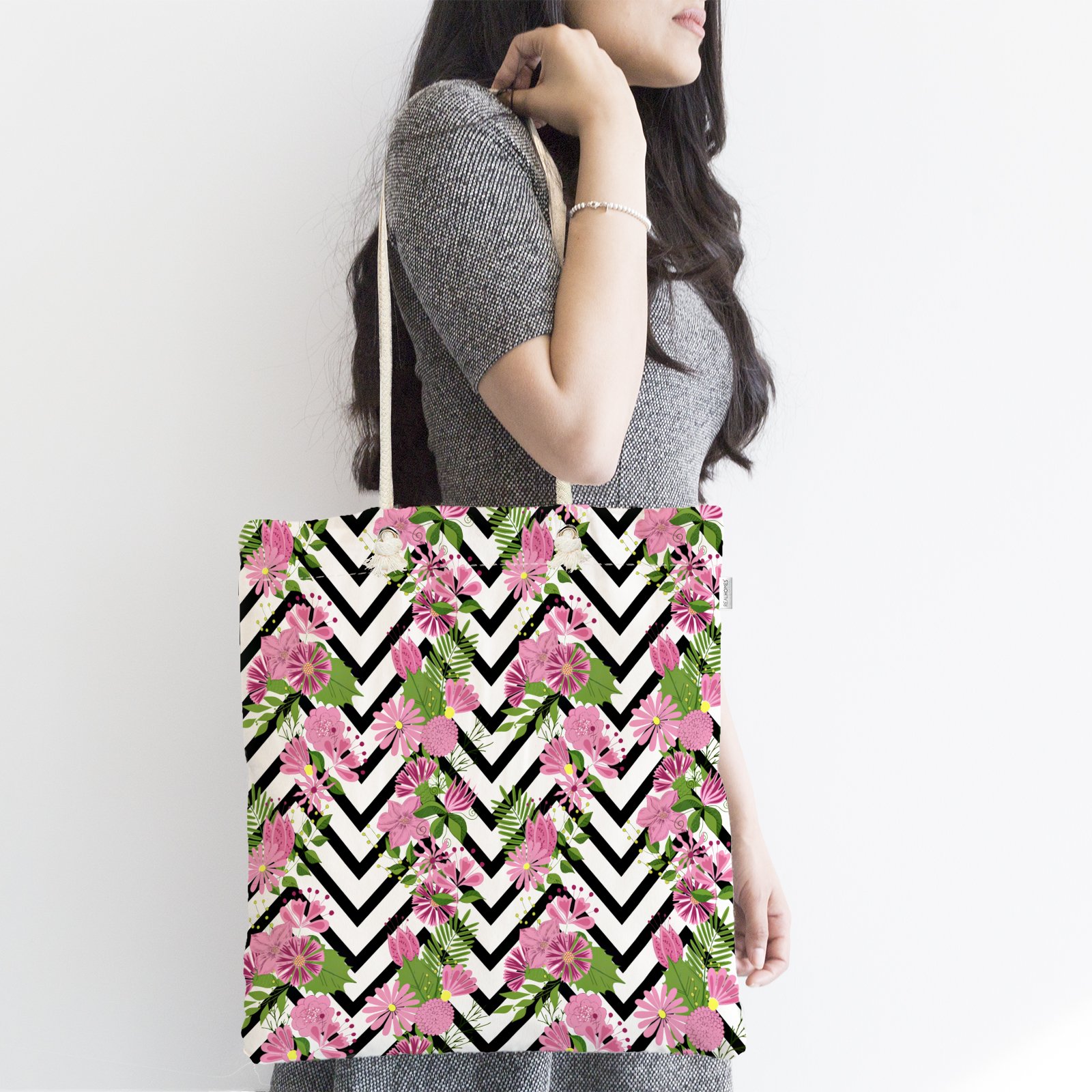 Zigzag Zebra Desenli Ogea Desenli Fermuarlı Kumaş Çanta