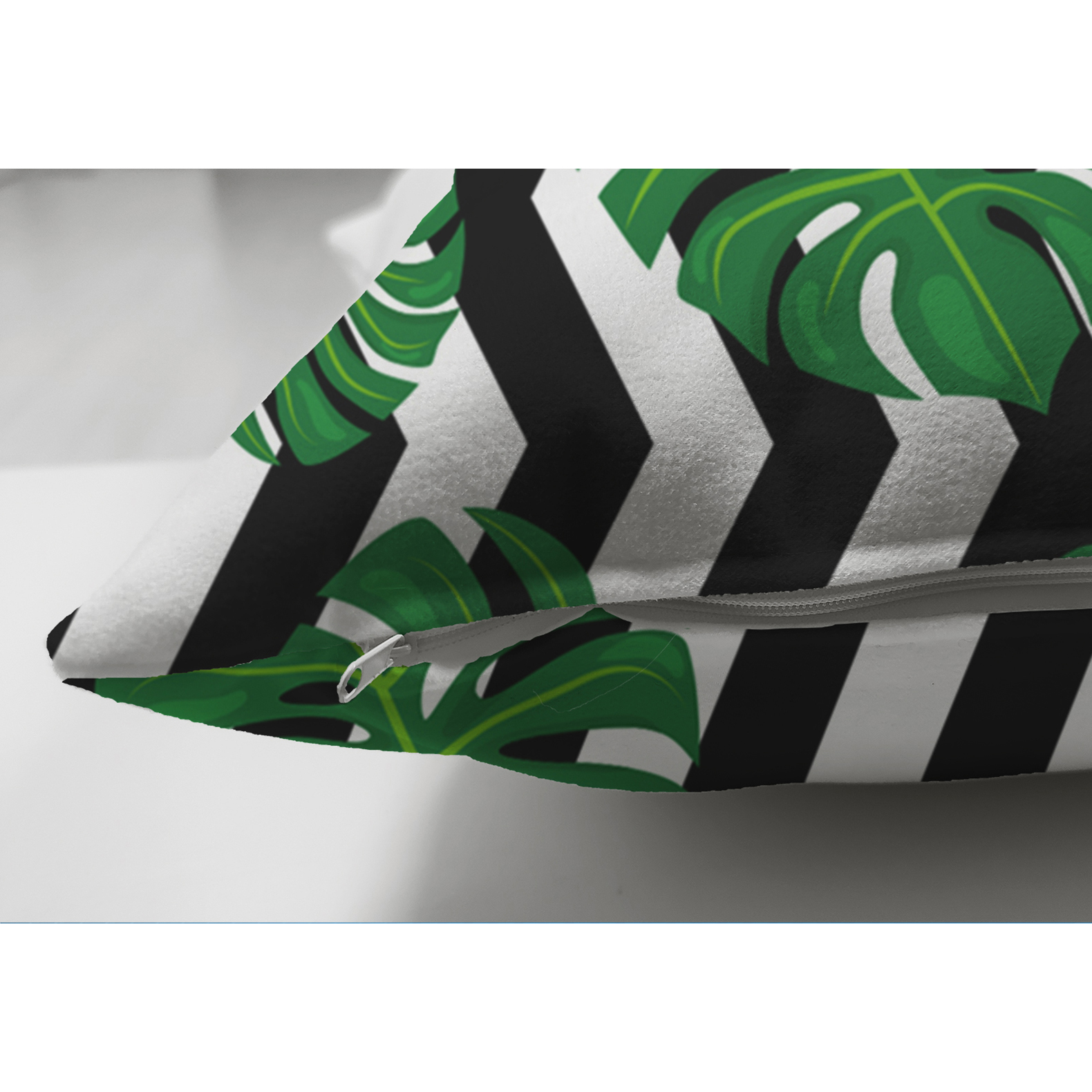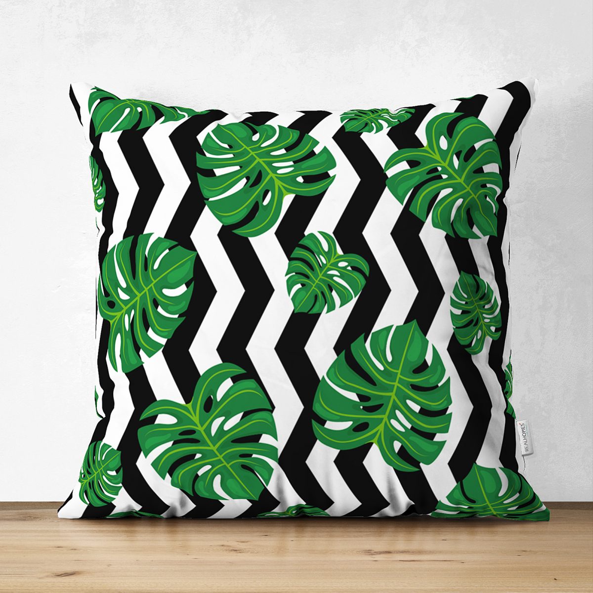 Zigzag Zebra Temalı Yaprak Çizimli Dijital Baskılı Çift Taraflı Süet Yastık Kırlent Kılıfı Realhomes