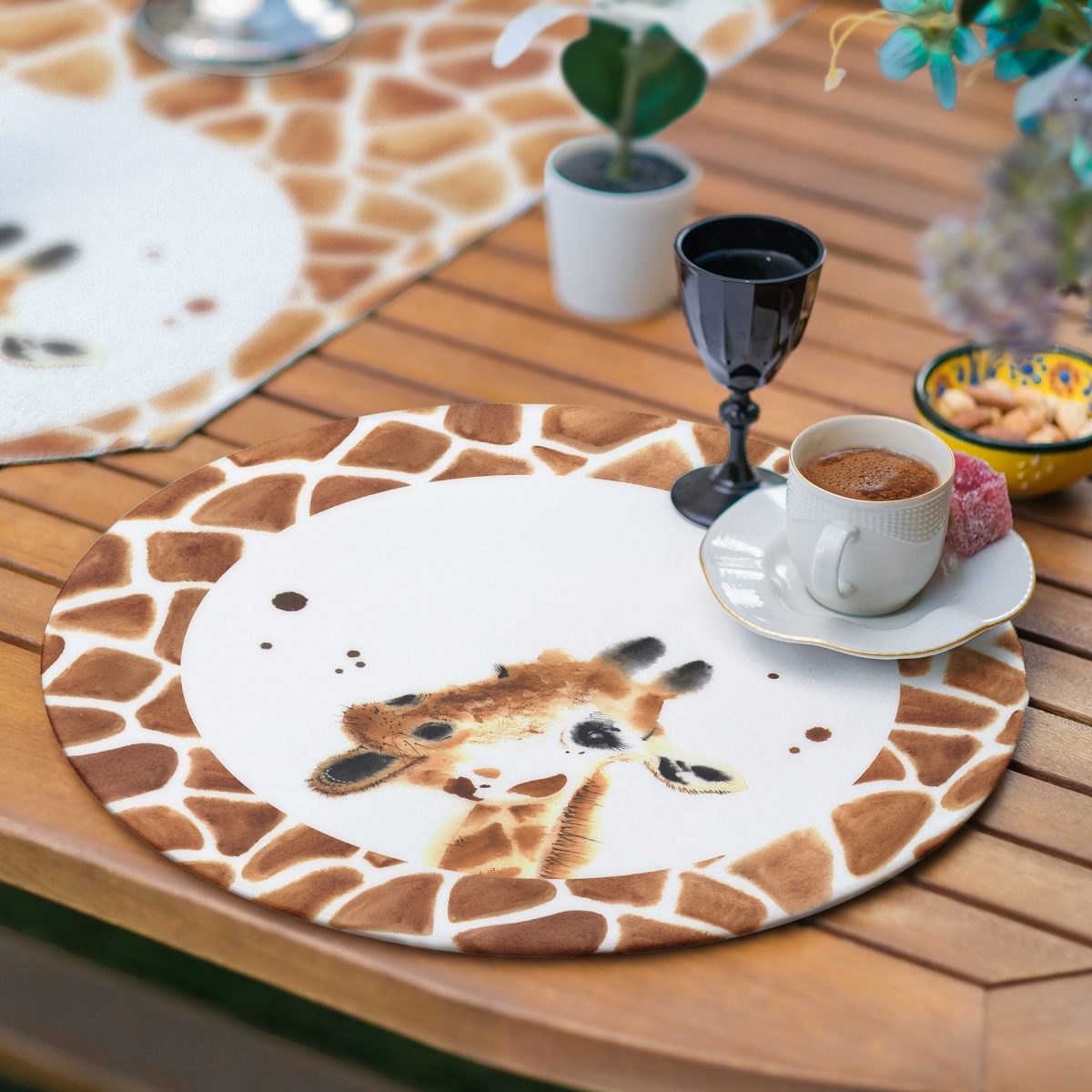 Zürafa Motifli Dijital Baskılı Özel Tasarım 6+1 Supla Runner Seti